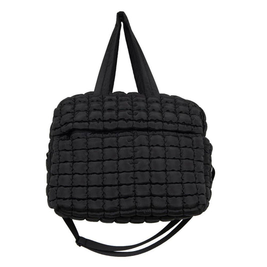 Black Quilted Duffel Weekender Bag w/ Pass-Thru Slip