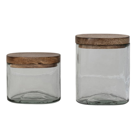 Hand-Blown Glass Jar with Mango Wood Lid