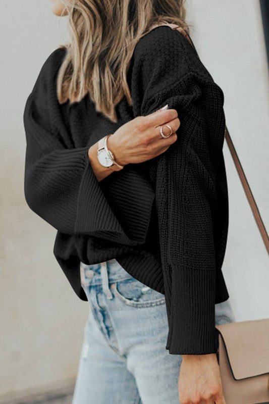 Textured Knit Wide Sleeve Sweater