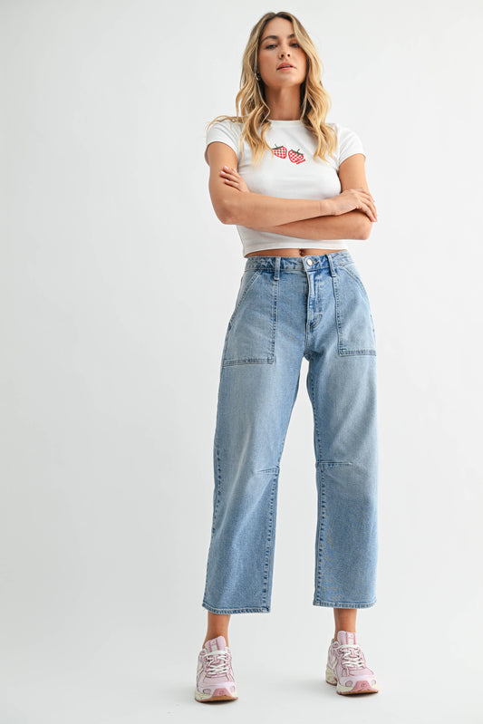 High Rise Medium Wash Crop Barrel Jeans