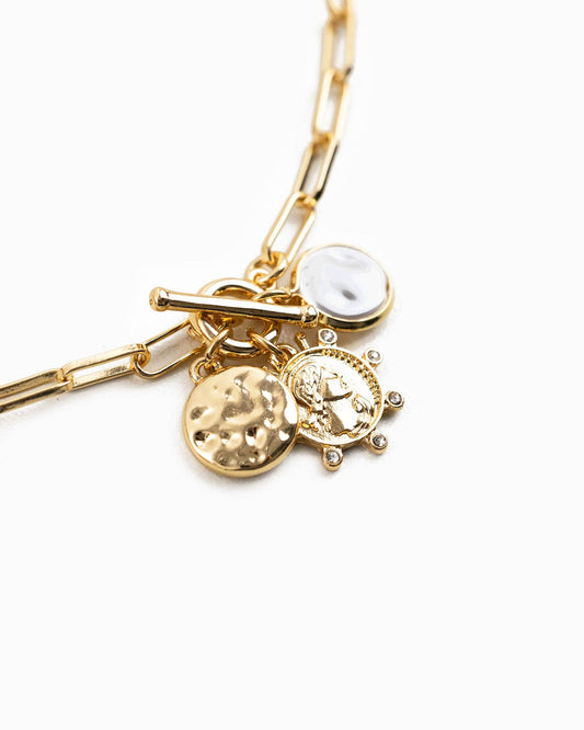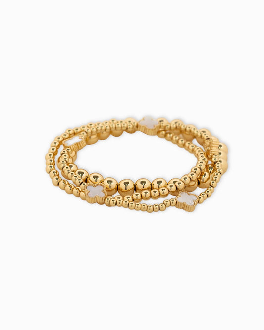 Simple Gold Ball and Pearl Stretch Bracelet Set