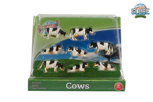 Kids Globe 1:87 Scale 8 Piece Standing/Laying Down Black and White Cow