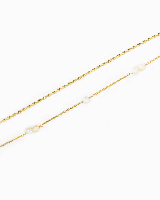 Stainless Steel Pearl Station Oval Chain Layered Necklace