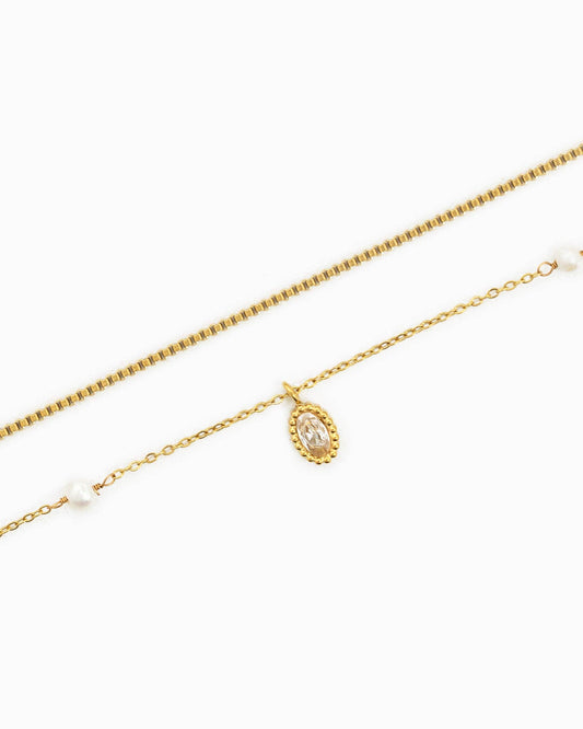 Stainless Steel Oval Pendant + Pearl Layered Necklace