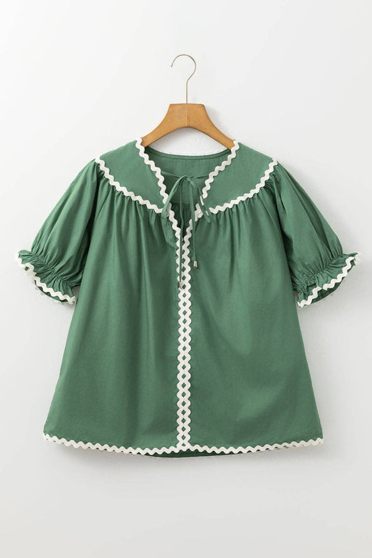 Ric Rac Tie Split Neck Spring Blouse