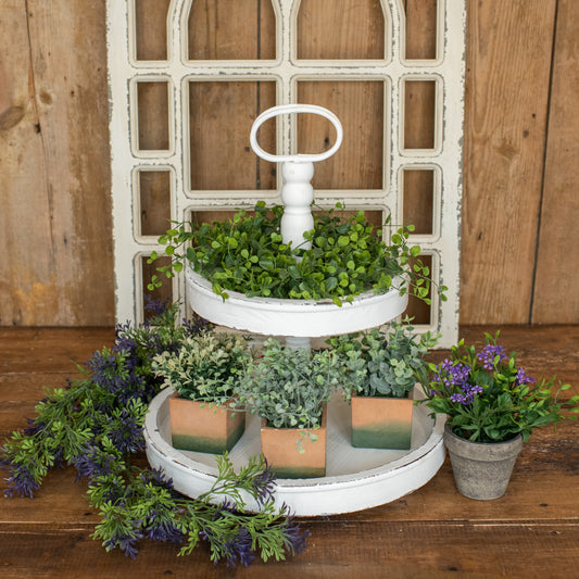 2-Tier White Wood Tray