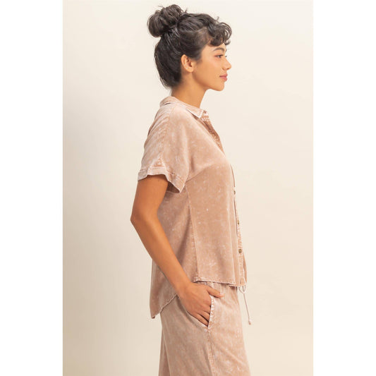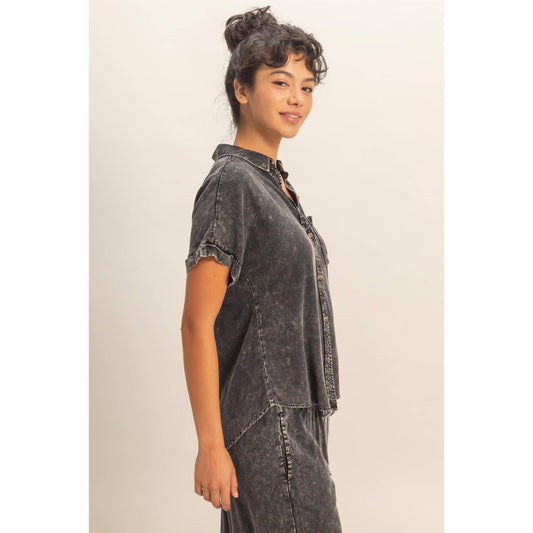 Mineral Wash Button-Up Dolman Sleeve Shirt