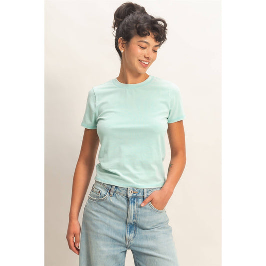 Turquoise Mineral Washed Short Sleeve Top