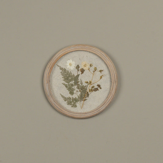Pressed Tan Flower in Round Frame