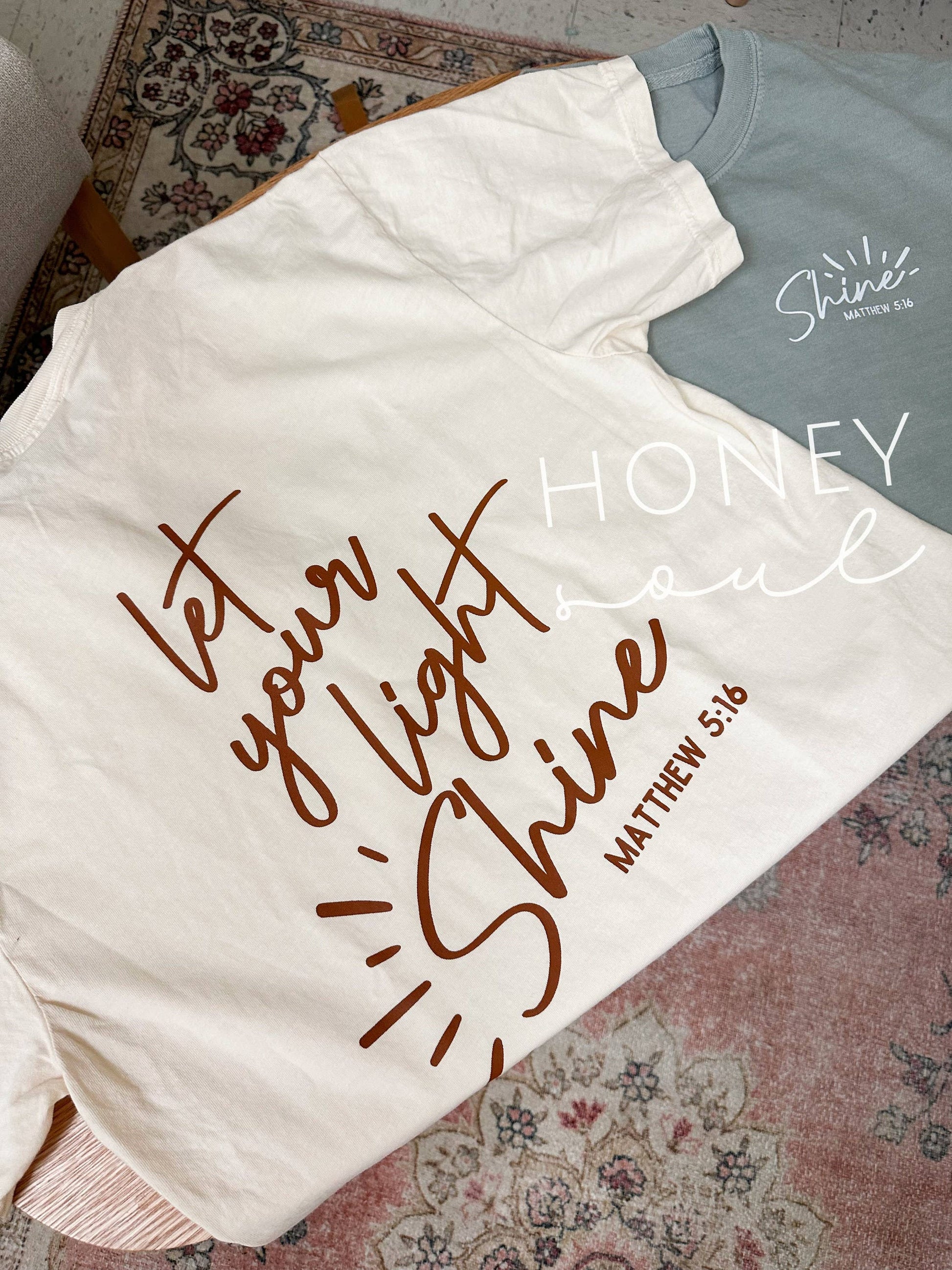 Let Your Light Shine Tee | Screen Transfer Graphic Tshirt | Christian Apparel Scripture | Be A Light Christian Tee Let Your Light Shine