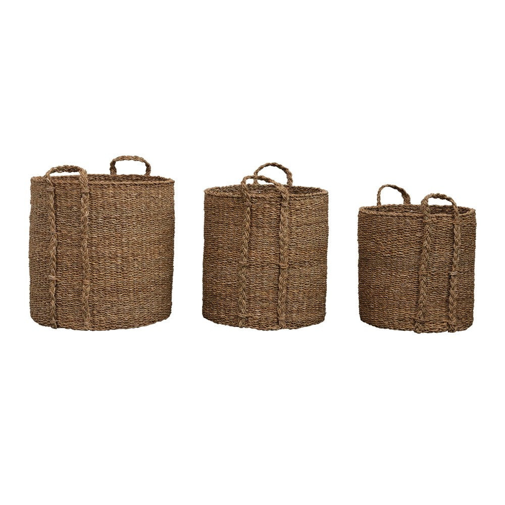 Hand-Woven Seagrass Baskets w/ Handles, 3 Sizes