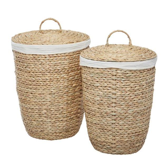 Designed with timeless sophistication, rich old-world textures and warm hues come together for a refined classic taste of luxury. These light brown storage baskets are crafted of natural seagrass and water hyacinth materials.